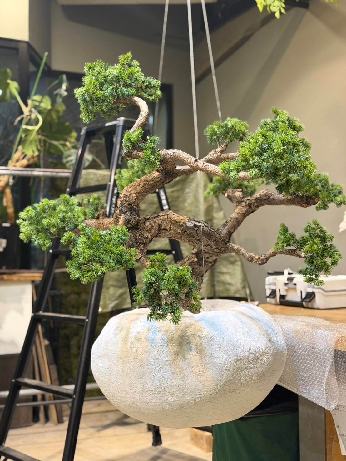 そのドライツリーに一枚一枚丁寧にフェイクリーフを取り付けることで、まるで本物のようなツリーを再現します。