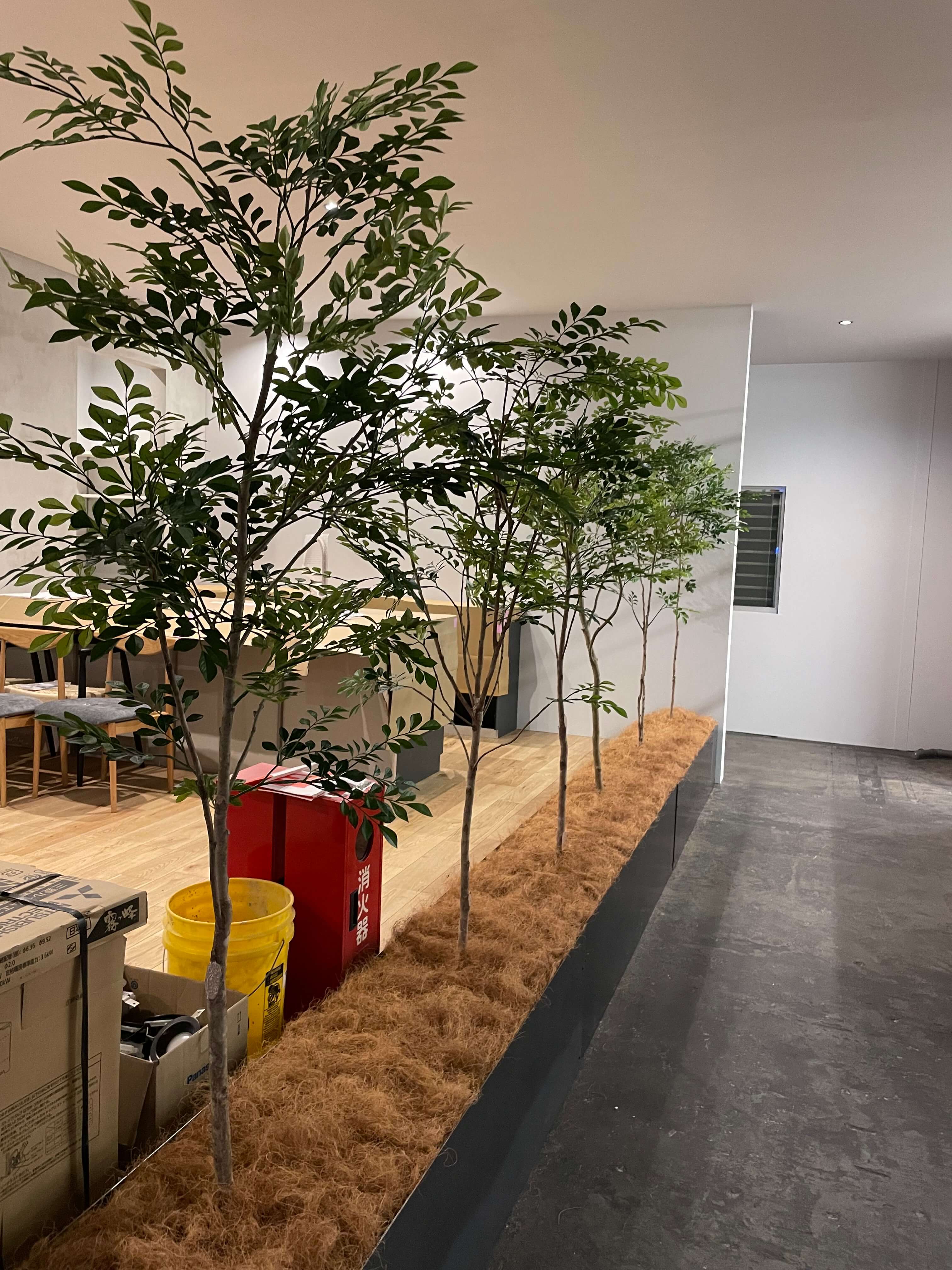 本物の木が持つ存在感と、枯れることのないフェイクリーフの美しさが融合し、常に自然を感じられる特別な空間を演出します。